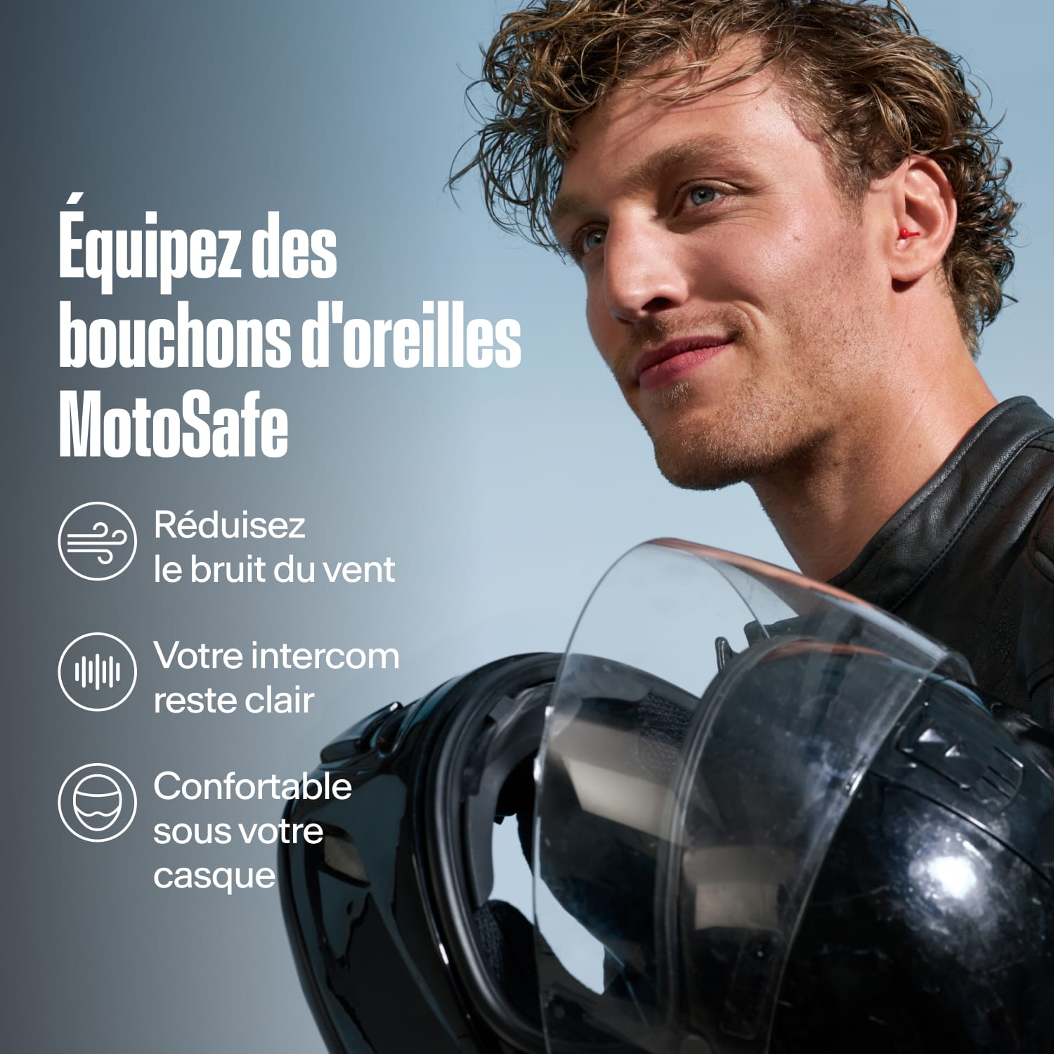 Bouchons moto, très atténuants, vitesses sup. à 100 km/h.